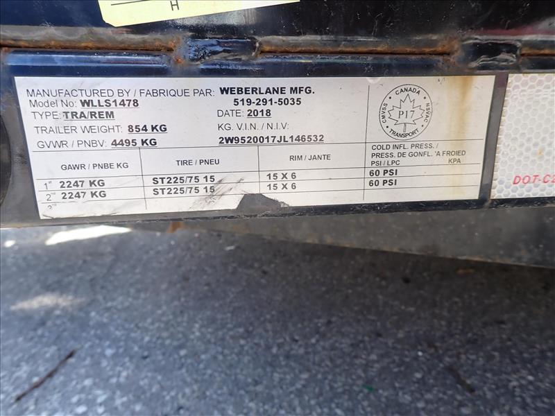 Weberlane Trailer, wood decking, model WLLS1478, VIN.2W9520017JL146532, 14 ft x 6 ft, tandem axle, 854kg (2018)