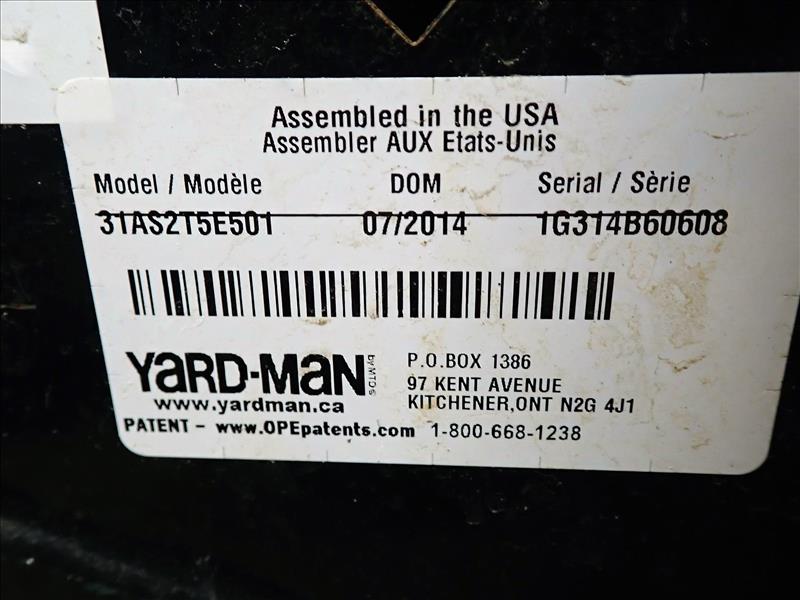 Yard-Man Snow Blower,model 31AS2T5E01, S/N.1G314B60608, 208cc four-cycle OHV engine