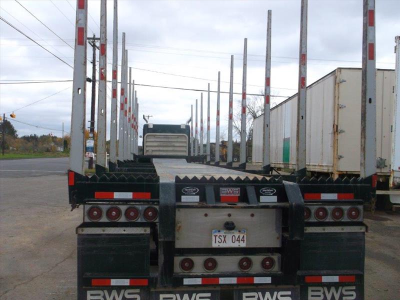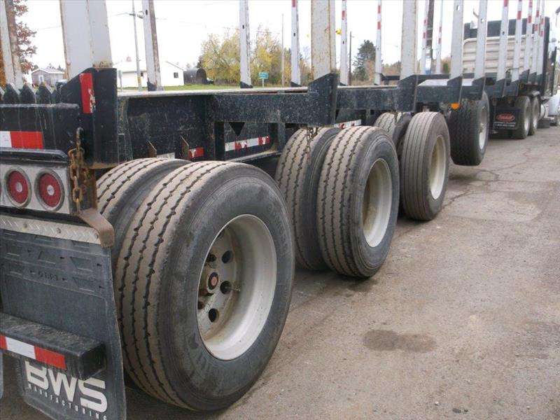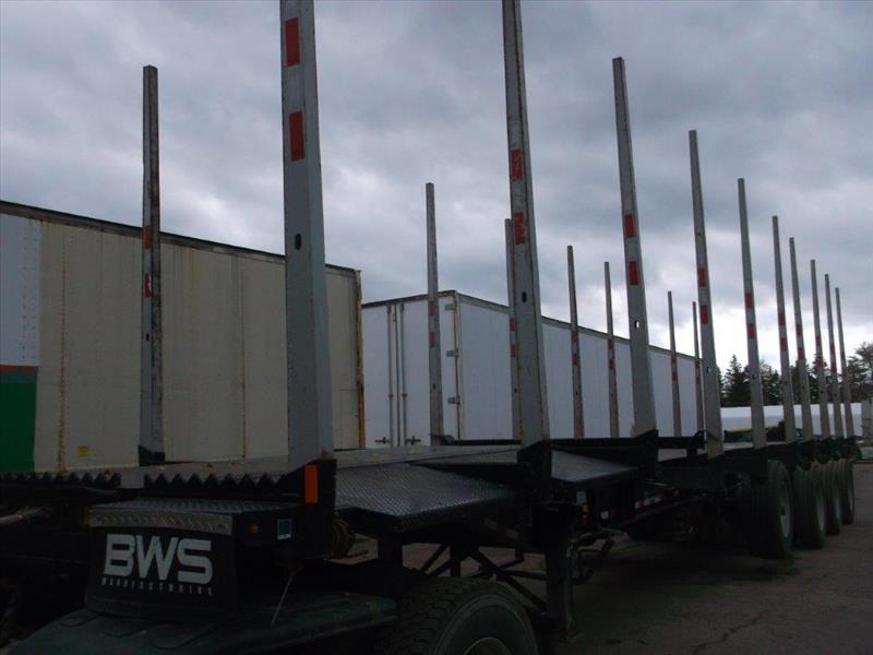 (SOLD) 2019 BWS Logging Single Drop Trailer, model 51LD4X5T V2018,VIN.2B9B6LY49MA001021, w/air ride suspension, quad rear axles, aluminum wheels, tire size 385/65R22.5