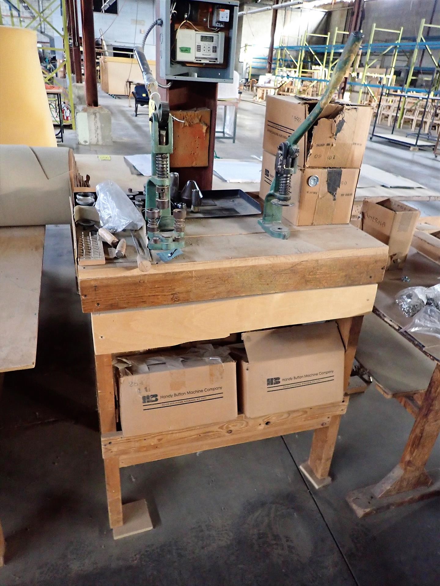 (2) Handy button presses, mod.s Junior and Handy No. 2 w/ 24 in. x 36 in. work bench c/w dies,