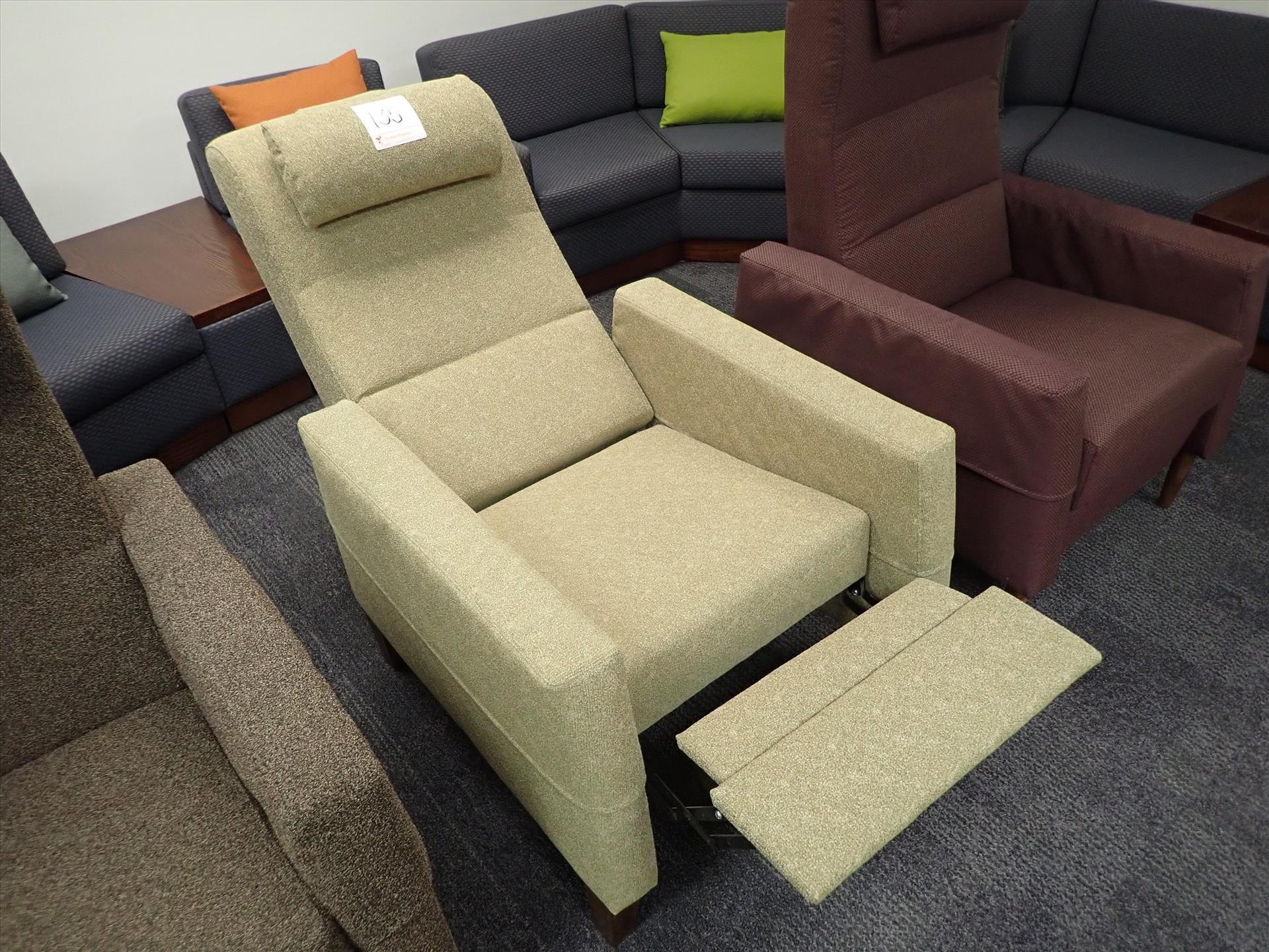 Baret push-back recliner w/ weighted headrest, arm-covers, stain-resistant commercial-grade fabrics