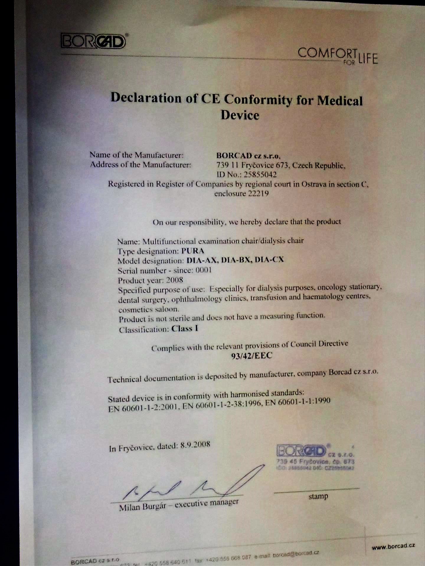BorCad Sella Medical Multifunctional Examination/Dialysis Chair, mod. SLA-JX, S/N 0654, Jade-