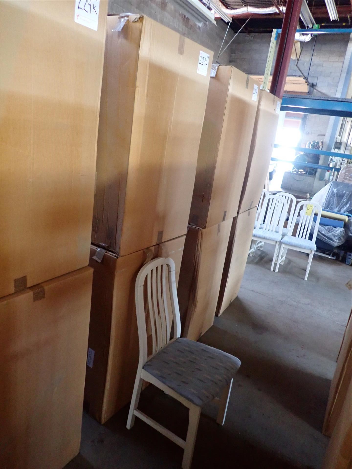 (4) Koln dinning chairs (NEW in box), white lacquered finish, stain-resistant commercial-grade