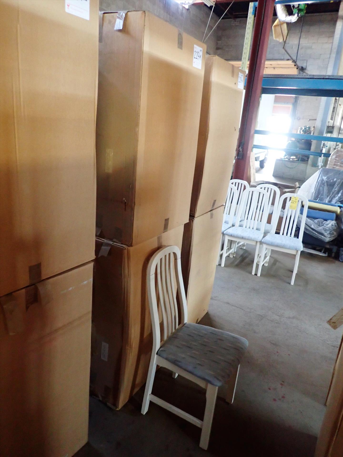 (4) Koln dinning chairs (NEW in box), white lacquered finish, stain-resistant commercial-grade