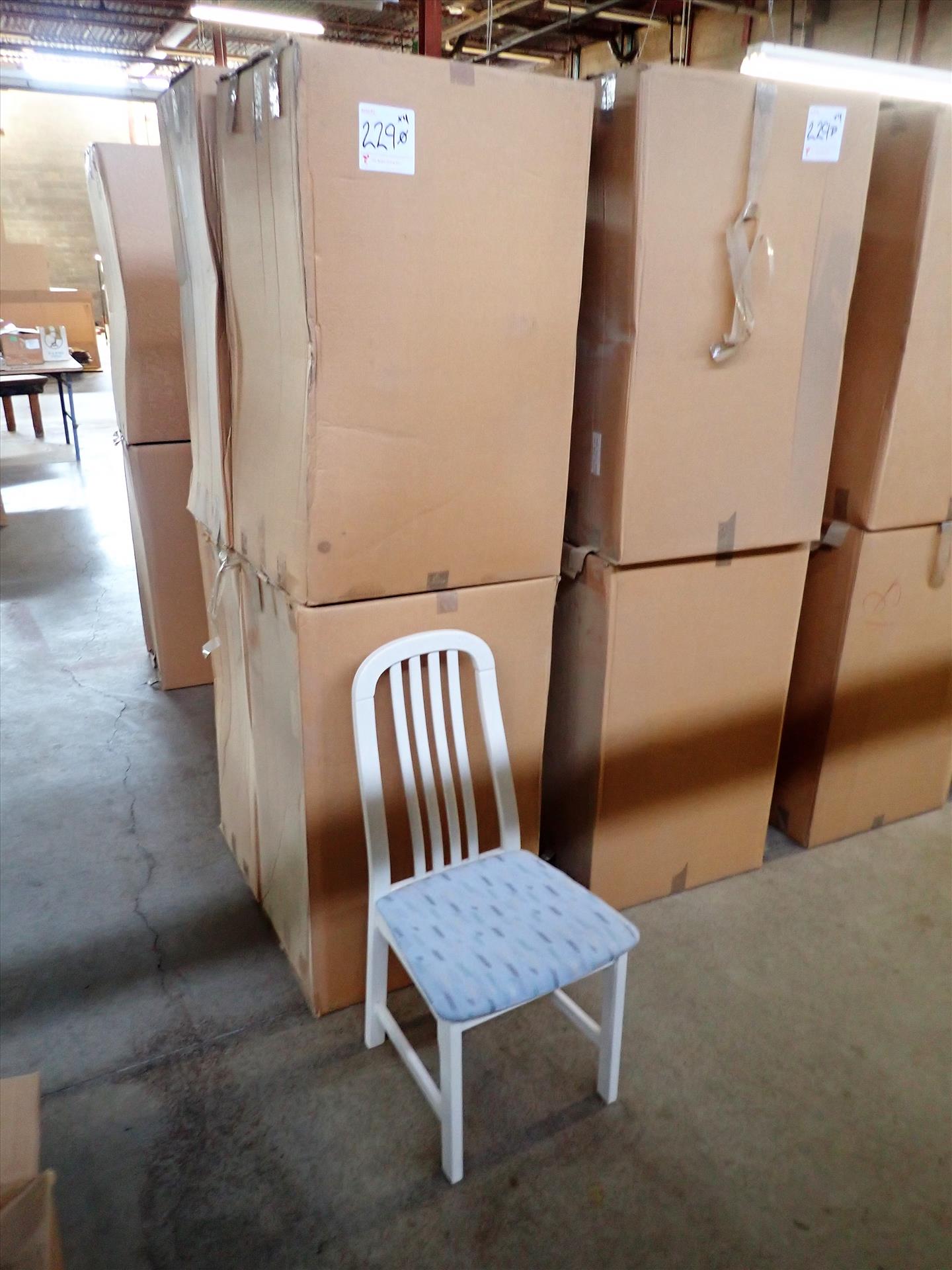 (4) Koln dinning chairs (NEW in box), white lacquered finish, stain-resistant commercial-grade