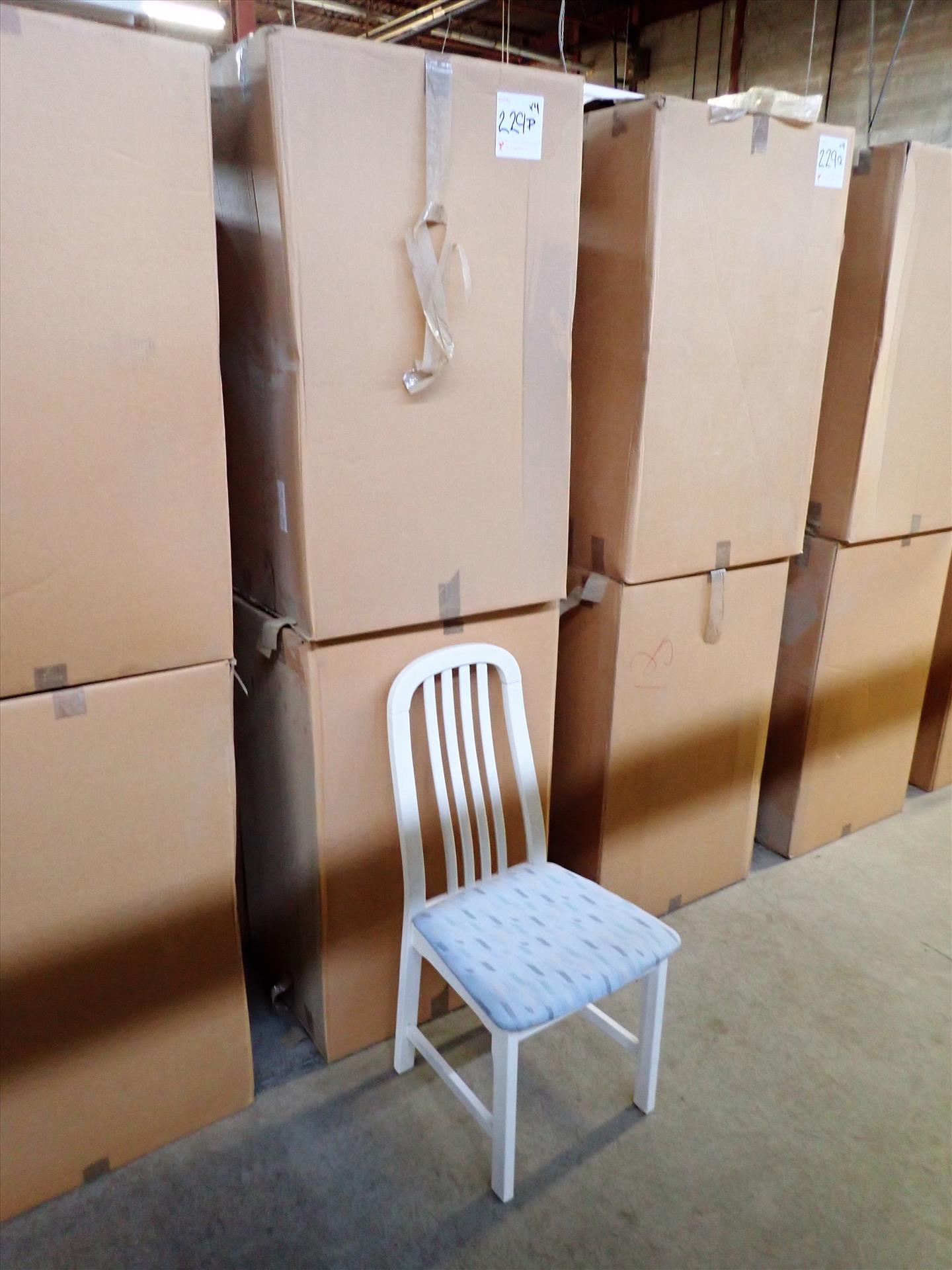 (4) Koln dinning chairs (NEW in box), white lacquered finish, stain-resistant commercial-grade