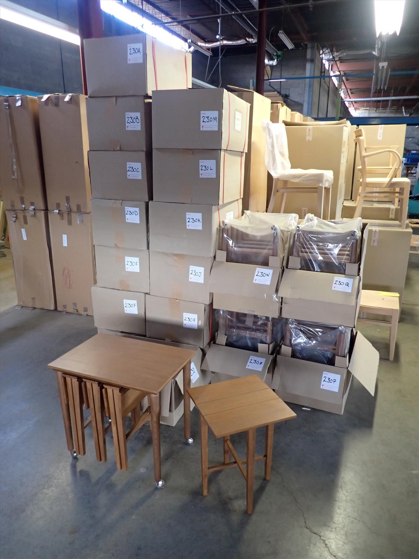 (1) Trolley H5 nesting table, Walnut finish, casters w/ (4) self-storing side tables (NEW in box,