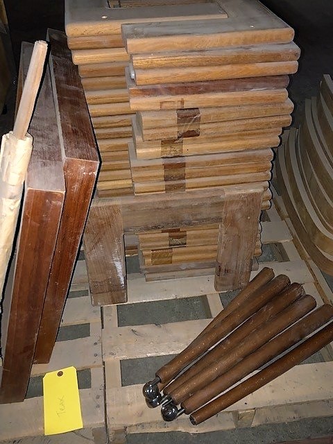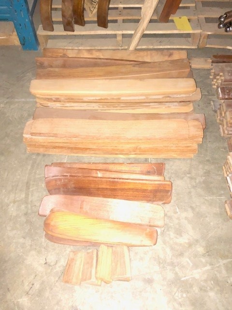 Vintage teak furniture parts made in Denmark; Ottoman sides, bases, assorted armcaps, chair
