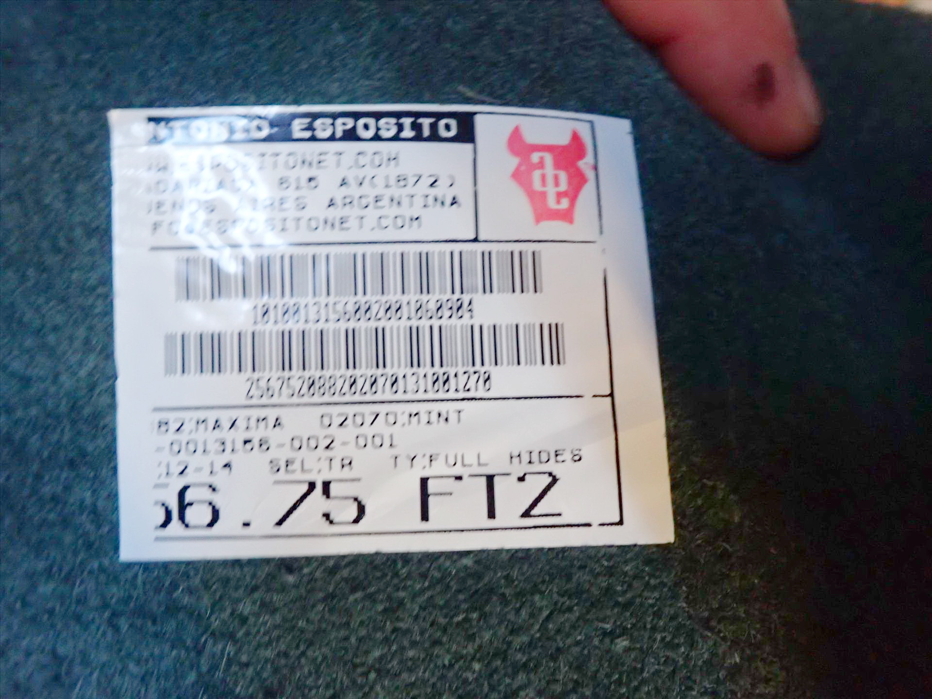Vintage Leather, Esposito/Maxima/Mint/Argentina, (2) full hides, 54.75 and 56.75 sq ft, 1.3-1.5 mm