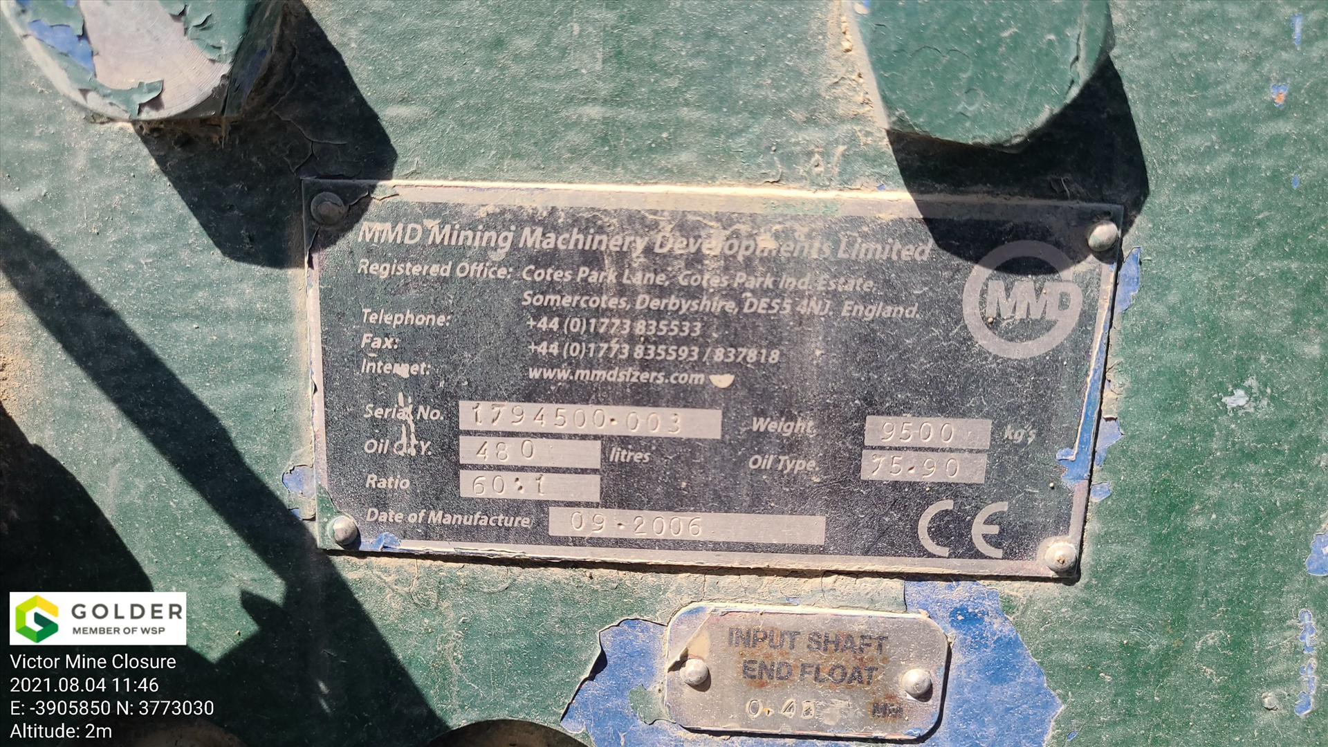 MMD Gearbox, ser. no. 1794500-003 (2006), ratio 60:1
