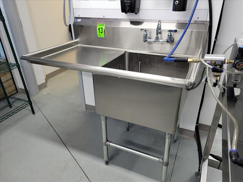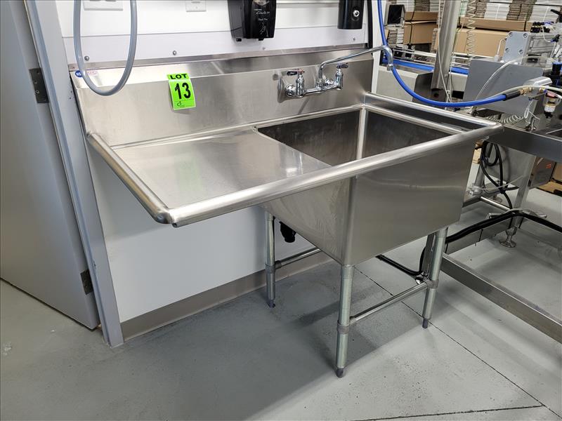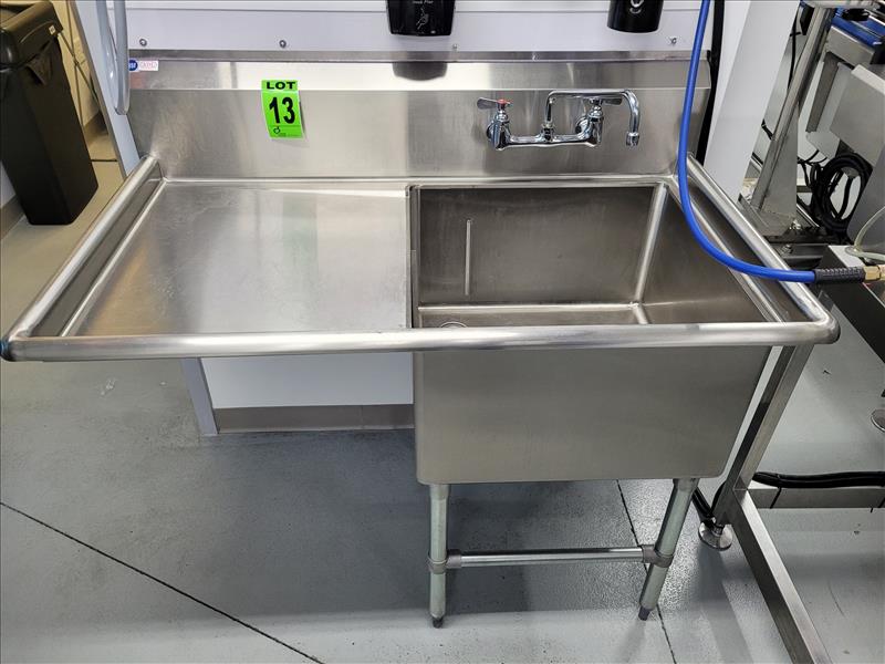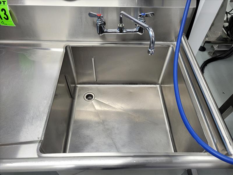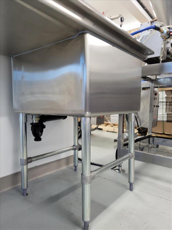 Single basin stainless steel sink w/ 25in x 25in basin, total size 30in W x 50in L x 40in H adj.