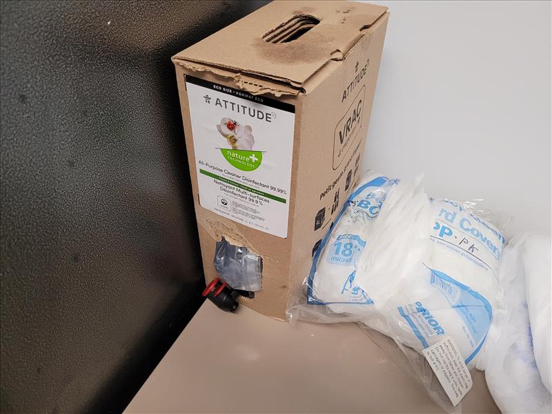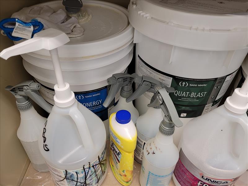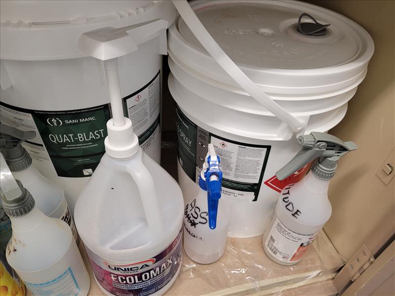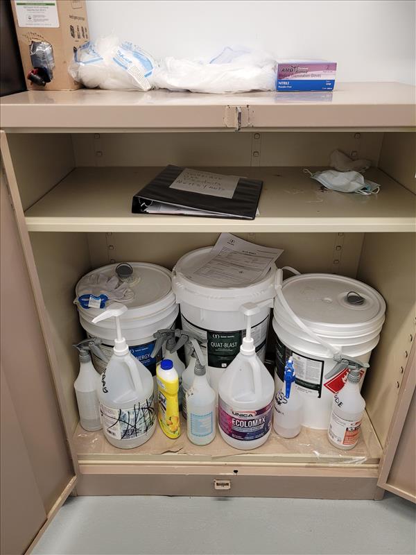 2-door, 2-shelf steel storage locker and contents including cleaning equipment, cleaning solutions and PPE
