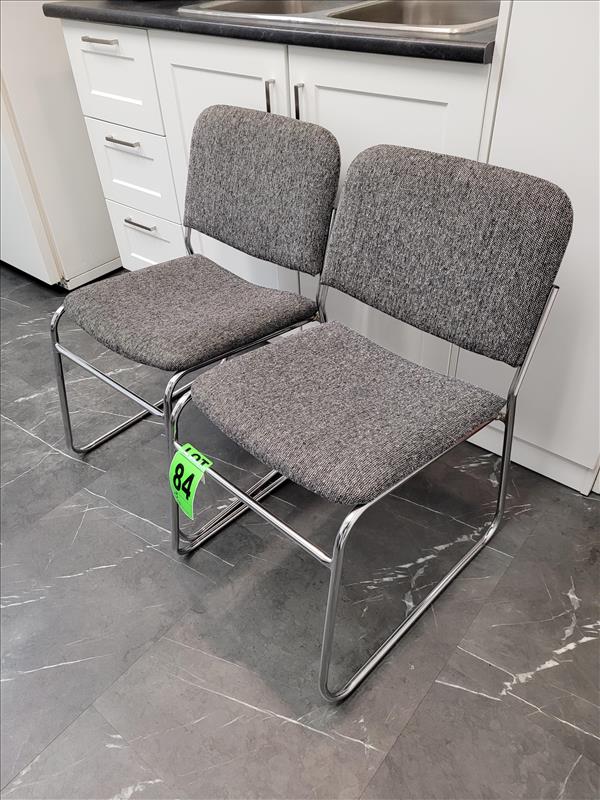 Gray fabric and metal frame break room chairs