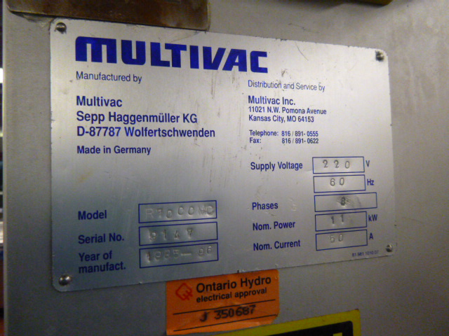 Multivac vacuum packager, model R7000MC, ser. no. 9147, c/w trim collection