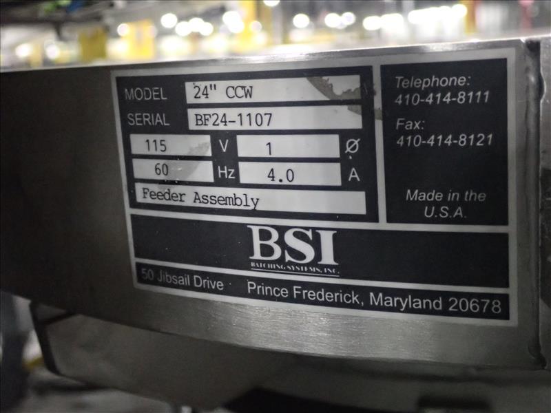 Batching Systems Inc. dual continuous counter, mod. BATCHMASTER IV, ser. no. BMIV-N-DA-036 w/ dual view scanners, dual fluted belt infeed conveyor, dual 24 in. vibratory bowl feeders, dual GATEBUDDY's, touch-screen controller and adj. hydraulic stand on casters