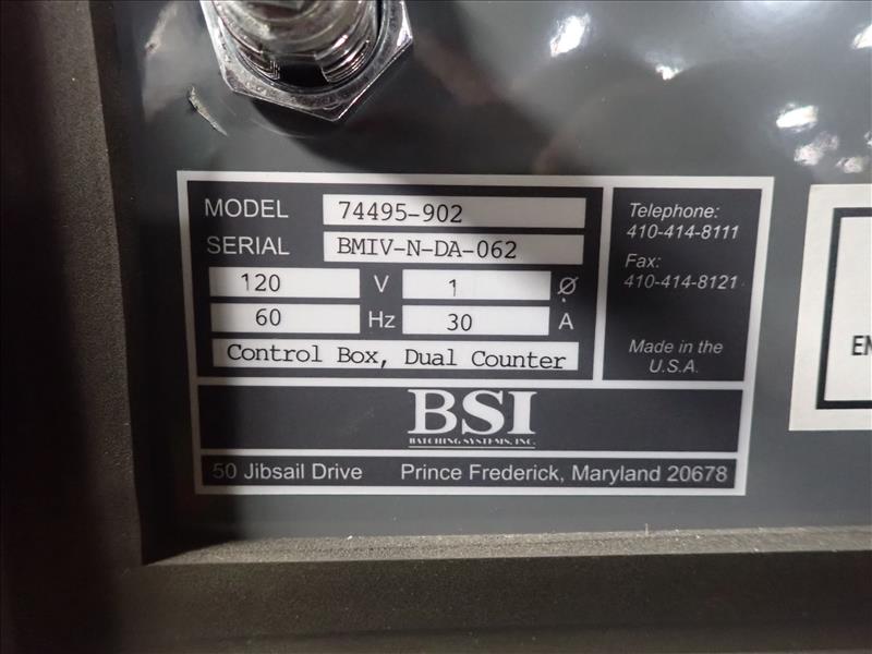 Batching Systems Inc. dual continuous counter, mod. BATCHMASTER IV DELUXE, ser. no. BMIV-N-DA-062 w/ dual view scanners, dual fluted belt infeed conveyor, dual 24 in. vibratory bowl feeders, dual GATEBUDDY's, touch-screen controller and adj. hydraulic stand on casters
