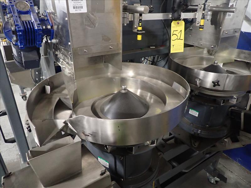 Batching Systems Inc. dual continuous counter, mod. BATCHMASTER IV DELUXE, ser. no. BMIV-N-DA-080 w/ dual view scanners, dual fluted belt infeed conveyor, dual 24 in. vibratory bowl feeders, dual GATEBUDDY's, touch-screen controller and adj. hydraulic stand on casters