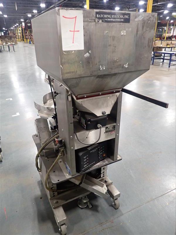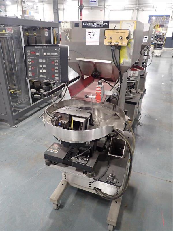 Batching Systems Inc. continuous counter, mod. BATCHMASTER II w/ 2D view scanners, 22 in. vibratory bowl feeder, controller on casters