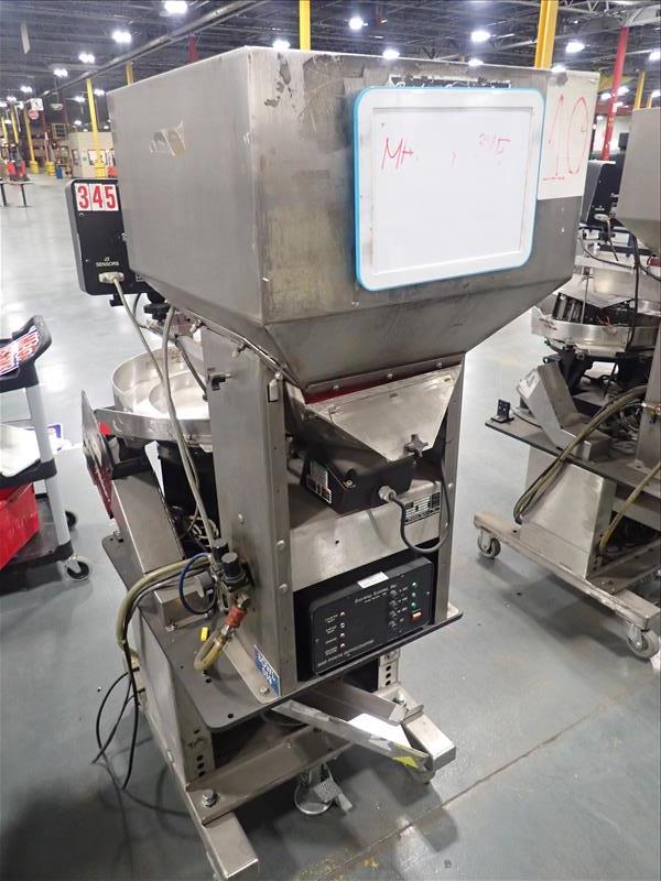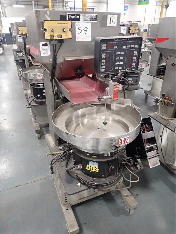 Batching Systems Inc. continuous counter, mod. BATCHMASTER II w/ 2D view scanners, 22 in. vibratory bowl feeder, controller on casters