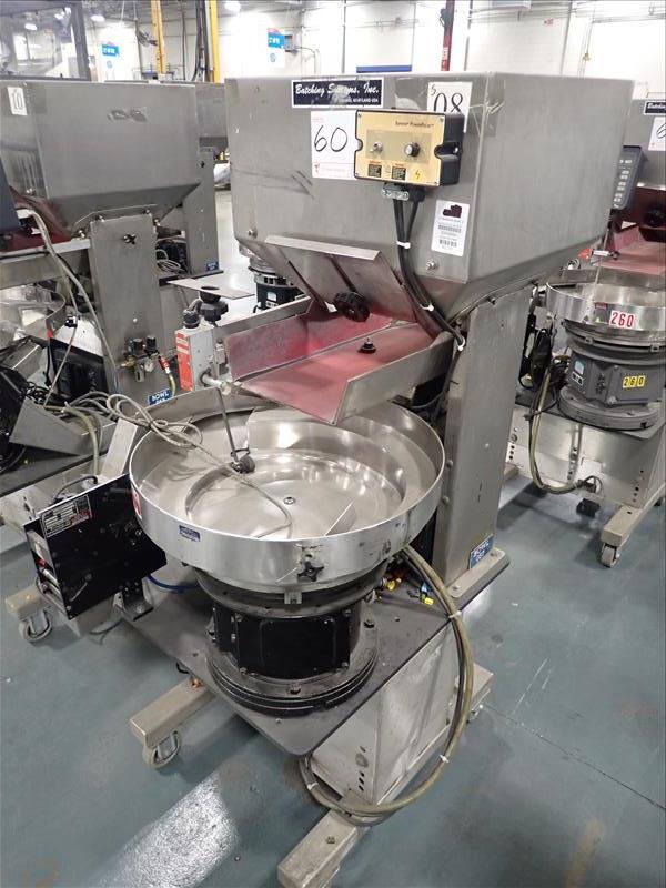 Batching Systems Inc. continuous counter, mod. BATCHMASTER II w/ 2D view scanners, 22 in. vibratory bowl feeder, controller on casters