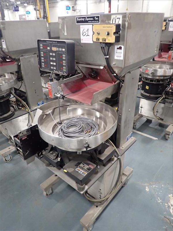 Batching Systems Inc. continuous counter, mod. BATCHMASTER II w/ 2D view scanners, 22 in. vibratory bowl feeder, controller on casters