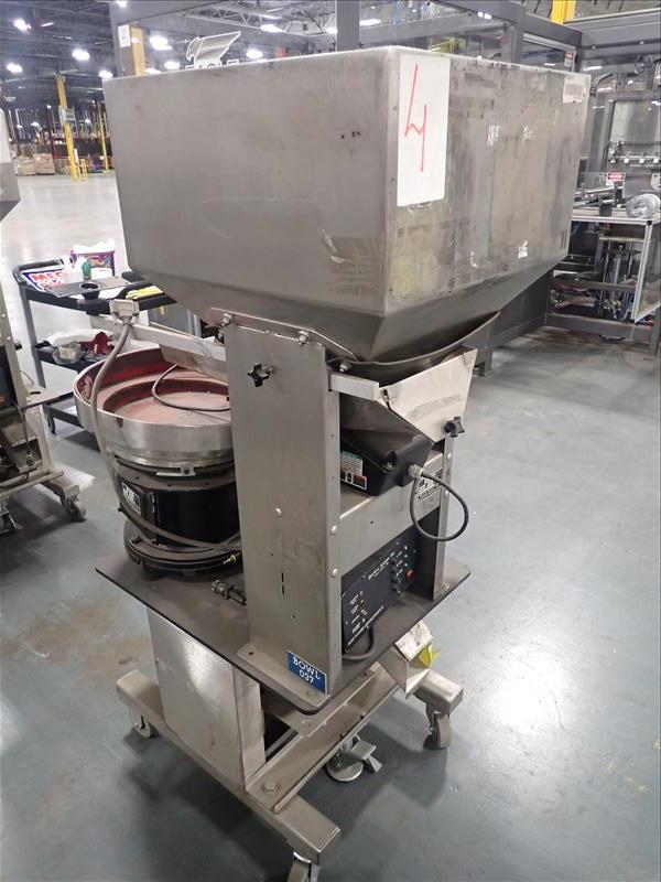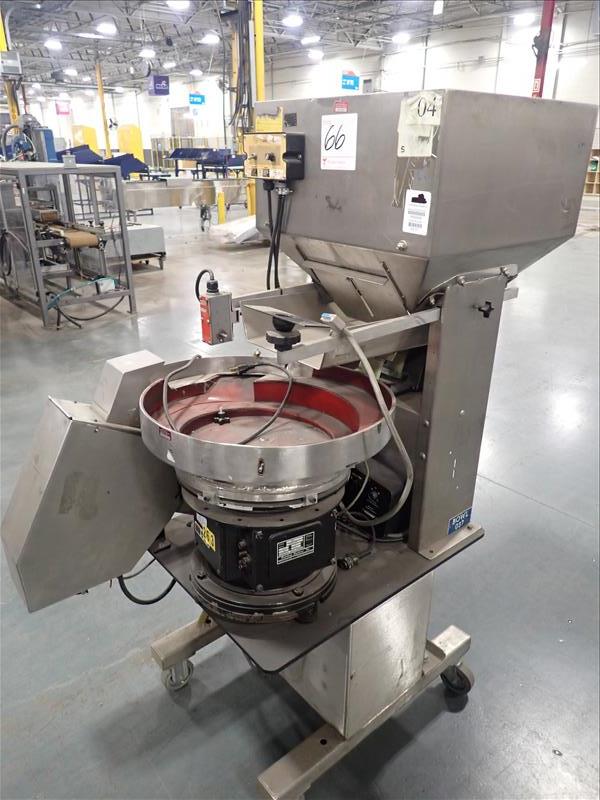 Batching Systems Inc. continuous counter, mod. BATCHMASTER II w/ 2D view scanners, 22 in. vibratory bowl feeder, controller on casters