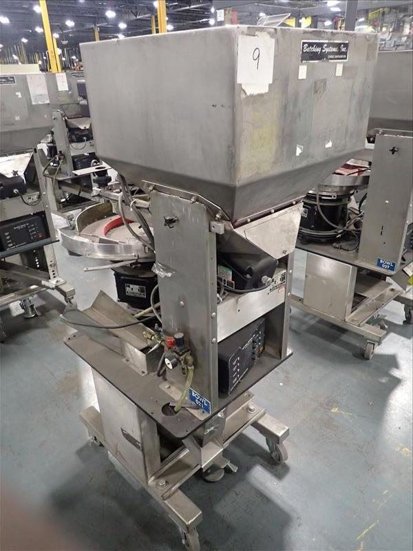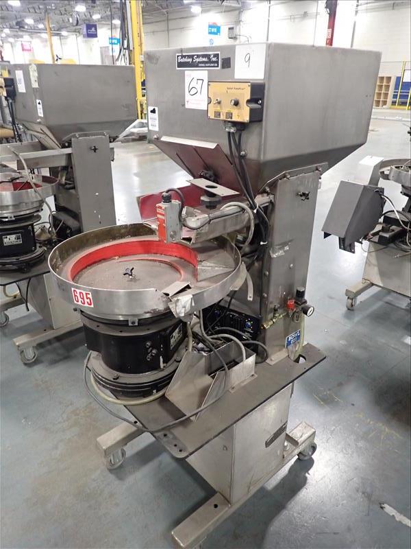 Batching Systems Inc. continuous counter, mod. BATCHMASTER II w/ 2D view scanners, 22 in. vibratory bowl feeder, controller on casters