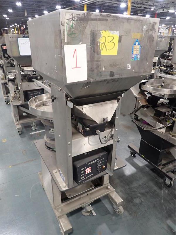 Batching Systems Inc. continuous counter, mod. BATCHMASTER II w/ 2D view scanners, 22 in. vibratory bowl feeder, controller on casters