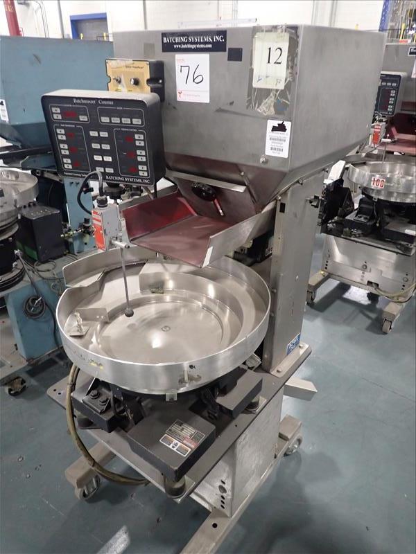 Batching Systems Inc. continuous counter, mod. BATCHMASTER II w/ 2D view scanners, 22 in. vibratory bowl feeder, controller on casters