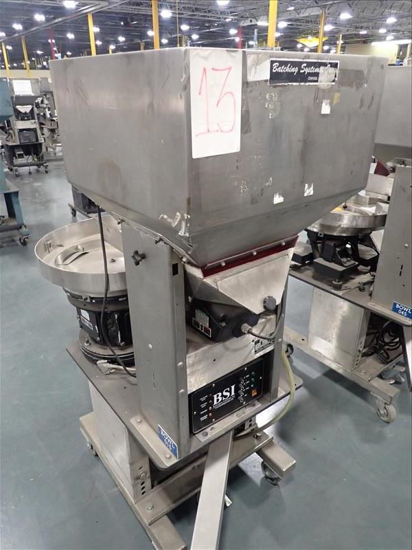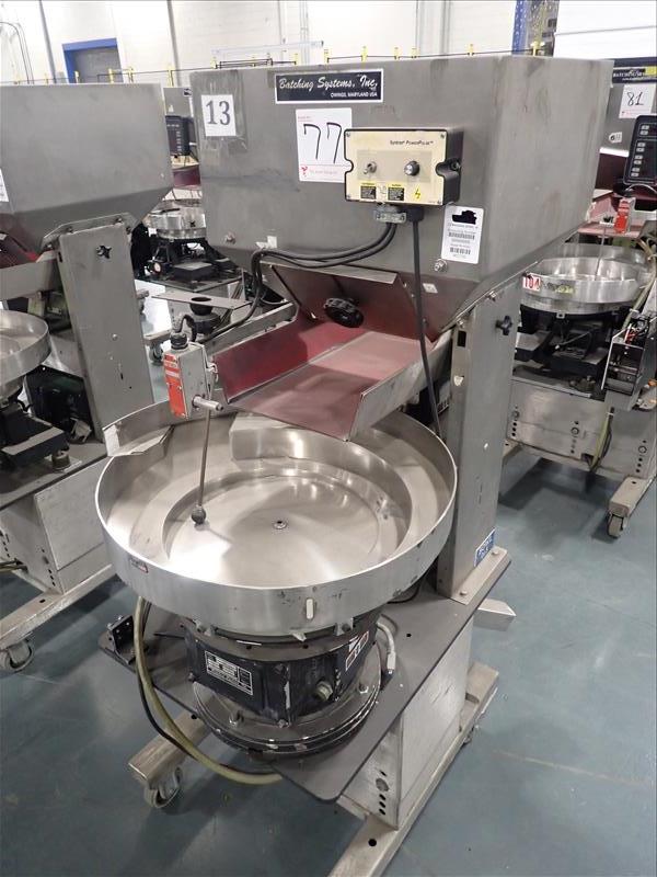 Batching Systems Inc. continuous counter, mod. BATCHMASTER II w/ 2D view scanners, 22 in. vibratory bowl feeder, controller on casters
