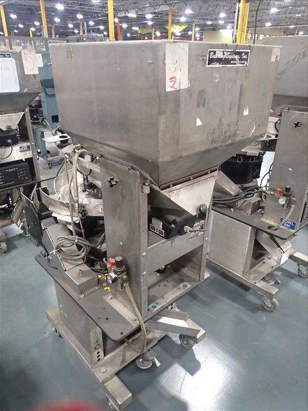 Batching Systems Inc. continuous counter, mod. BATCHMASTER II w/ 2D view scanners, 22 in. vibratory bowl feeder, controller on casters