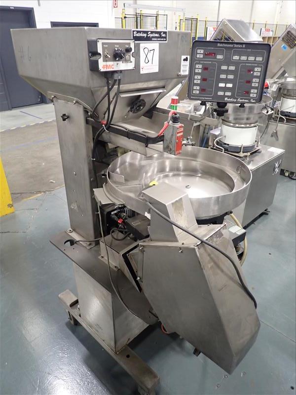 Batching Systems Inc. continuous counter, mod. BATCHMASTER II w/ 2D view scanners, 22 in. vibratory bowl feeder, controller on casters