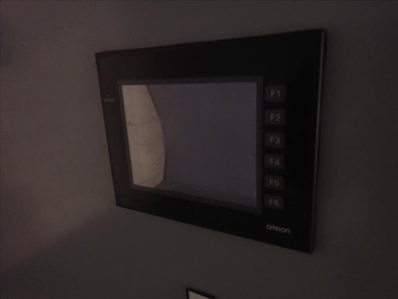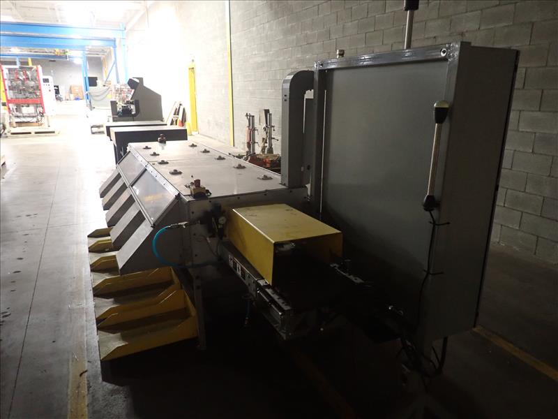 conveyorized sorting station, 12 in. x 12 ft belt w/ 10-station w/ kickers, control panel w/ Omron touch-screen controller
