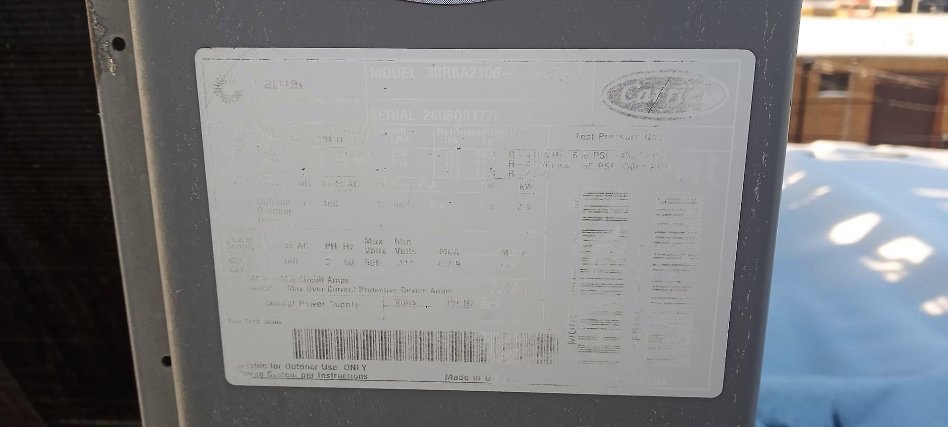 Carrier AquaSnap air-cooled liquid chiller, mod. 30RBA2100, ser. no. 2606Q81775