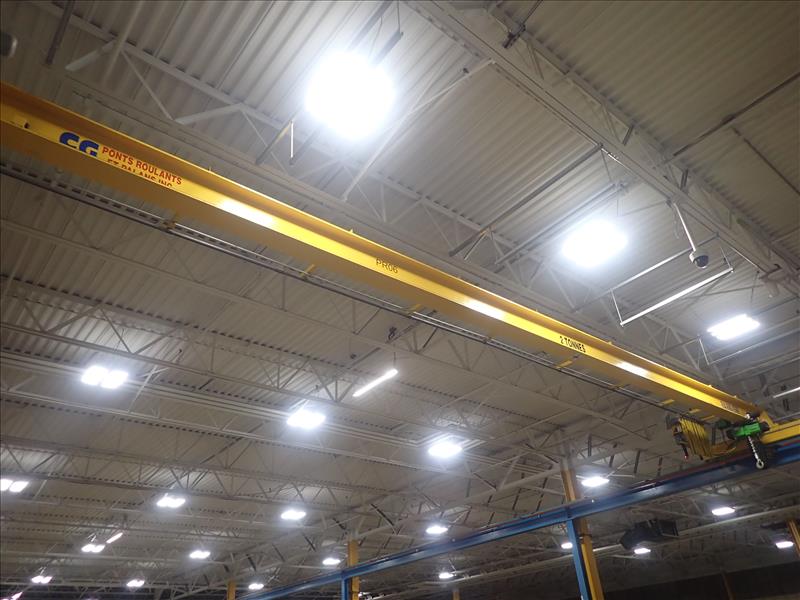 CG bridge crane, 2-ton w/ RWM 2-ton chain hoist, 42 ft spread, 110 ft run