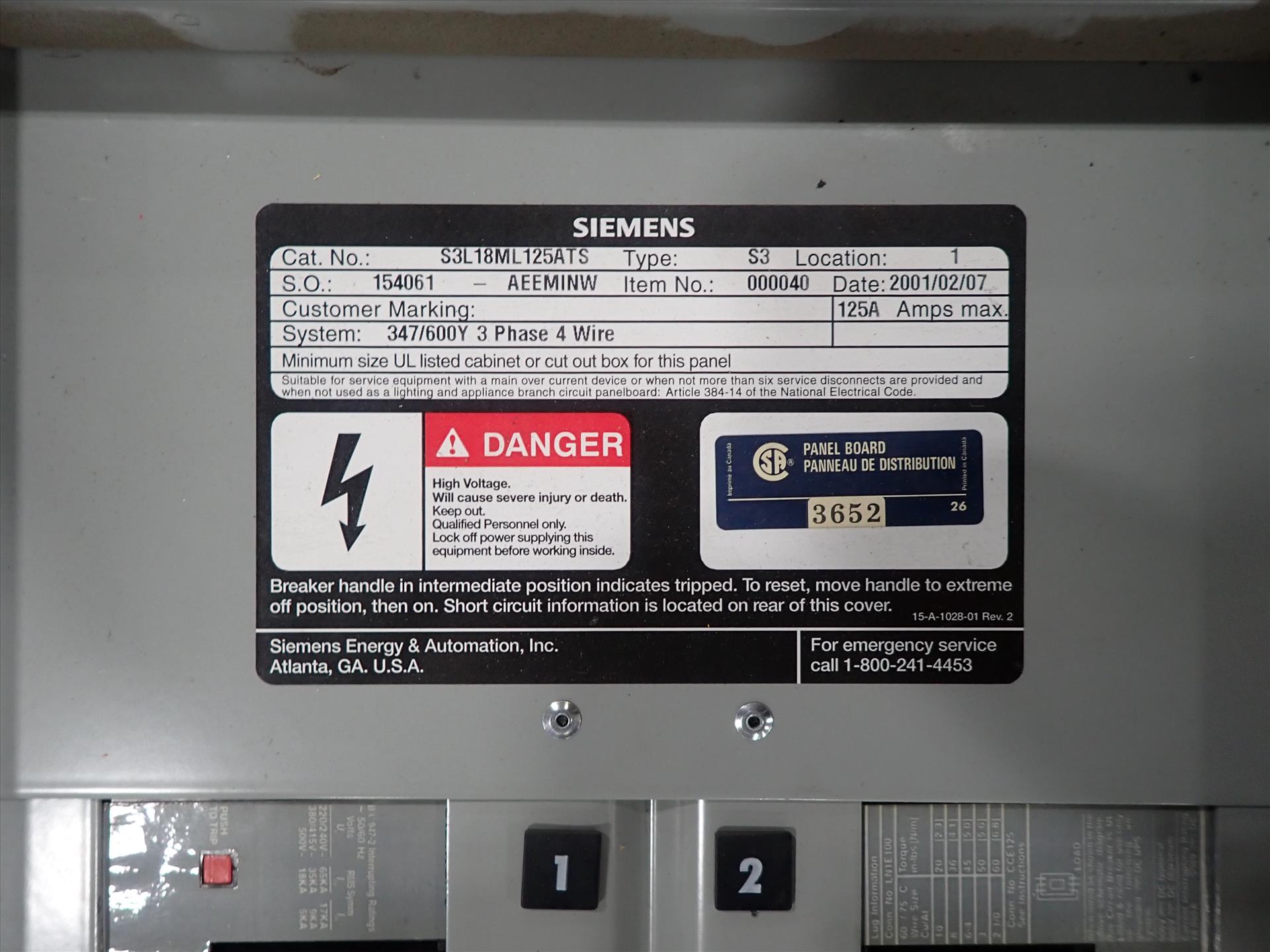 (6) Siemens breaker panels, cat. no. S3L18ML125ATS