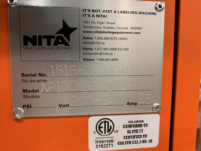 Nita All Servo Wrap Labeler, model XP100, S/N.1515-01-8919, 60HZ, 1 phase, 200-240 volt, 25 amp (2020) [SUBJECT TO CONFIRMATION]