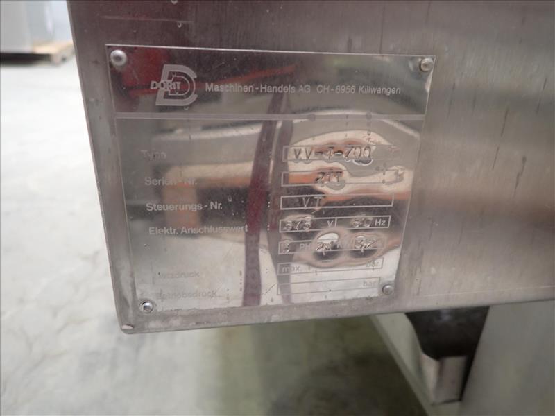 Dorit vacuum tumbler, s/s, mod. VV-4-700, ser. no. 211, 4 ft. dia. x 5 ft, 500 Litres/700 Kg cap. w/ control panel (excluding vacuum pump)