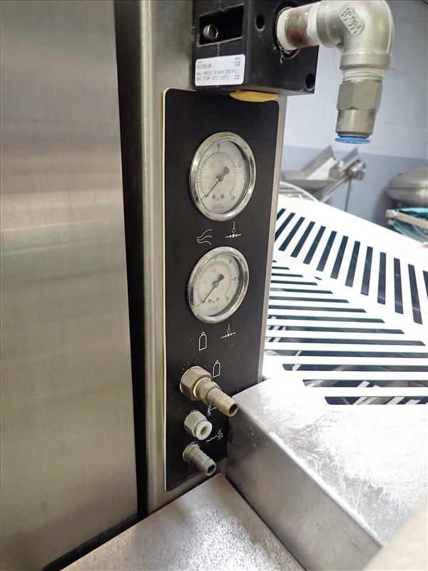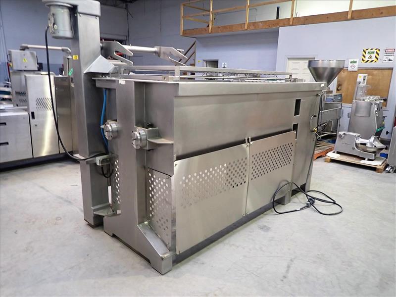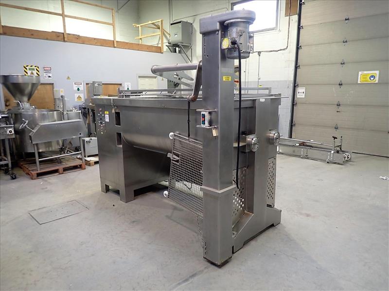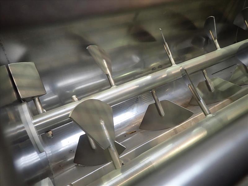 RISCO BREVETTI horizontal paddle mixer, s/s, mod. RS300, ser. no. 0453, dual-horizontal paddles, 10 in. dia. x 6 ft ea., 38 in. x 72 in. x 30 in. deep basin c/w bucket elevator, 24 in. x 6 ft. lift-Hight