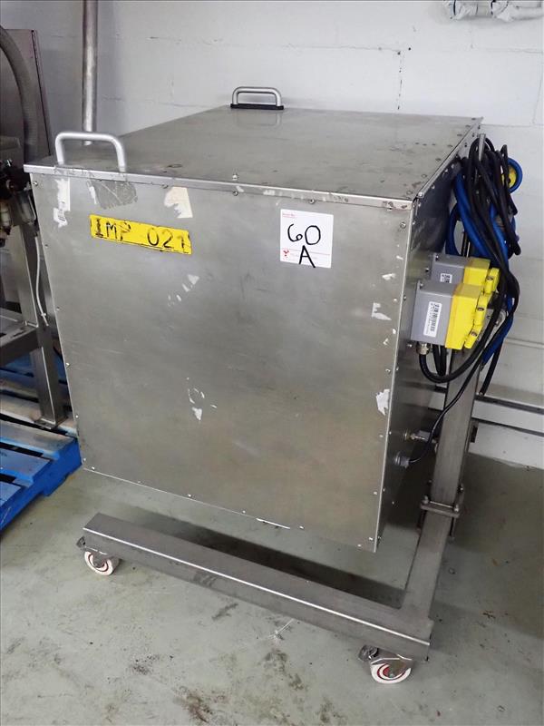 VideoJet/Zebra label printer, mod.s P3400/170PAX4 w/ s/s box, adj. height w/ casters