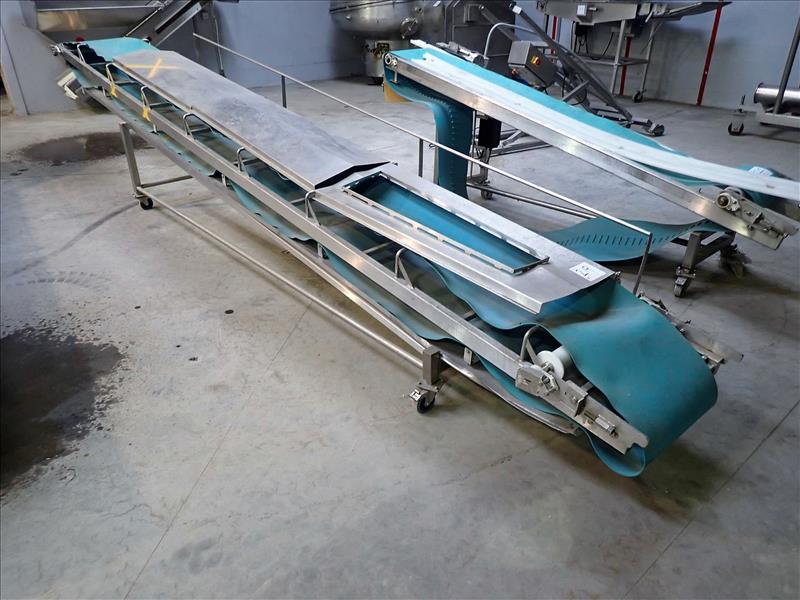 SolutionsInox mobile inclined conveyor, s/s, 20 in. x 19 ft. \"V-shape\" belt