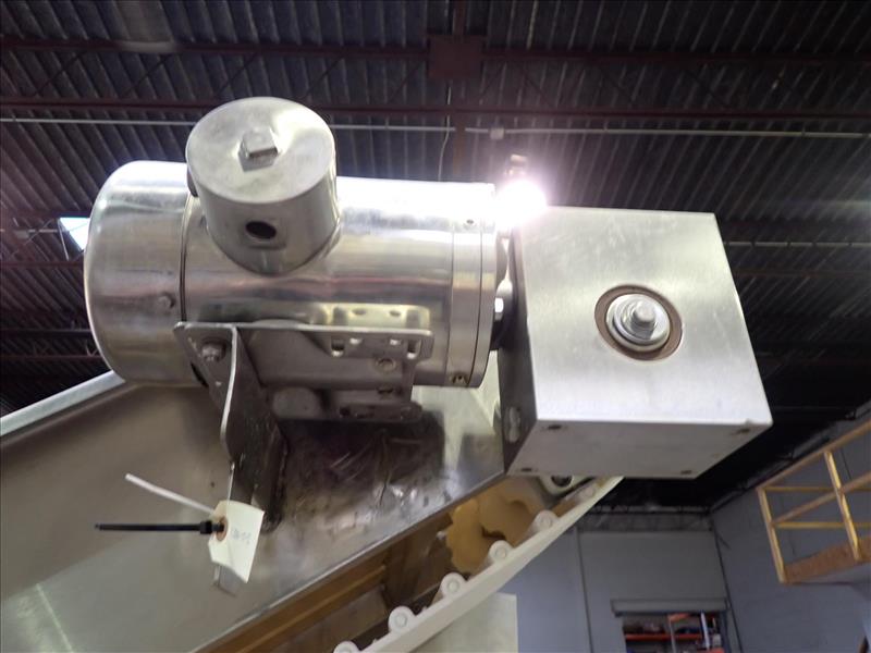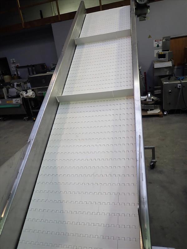 SolutionsInox inclined conveyor, s/s, 24 in. x 10 ft., fluted-belt w/ 1/4 hp wash down motor w/ casters