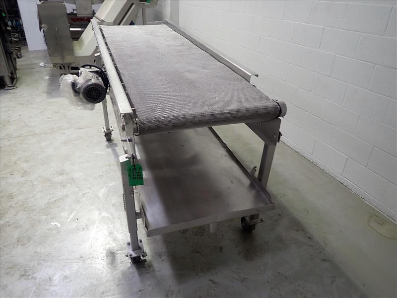Heat&Control mesh conveyor, s/s, mod. HTC, ser. no. 2101, 28 in. x 103 in., pwr w/ casters