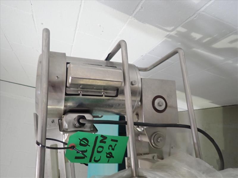SolutionsInox mobile inclined conveyor, s/s, 20 in. x 12 ft. \"V-shaped\" belt, 1 hp wash-down motor w/ casters