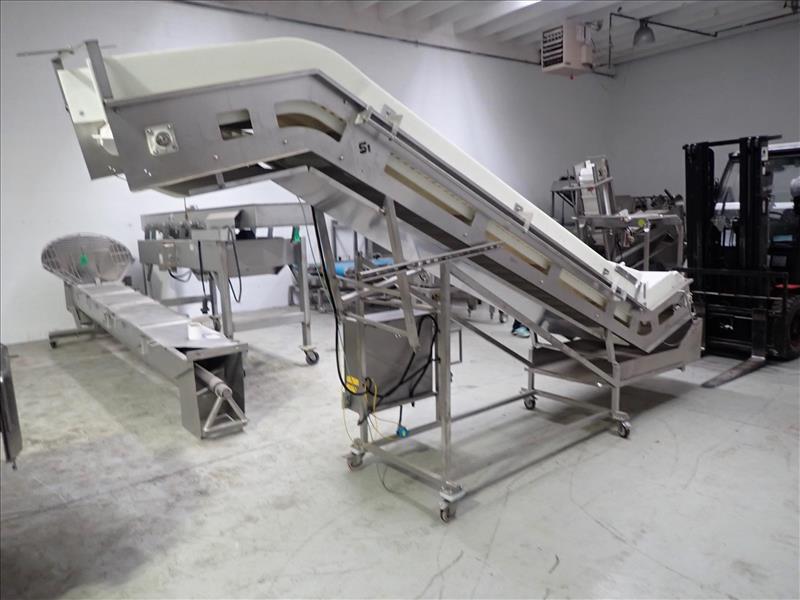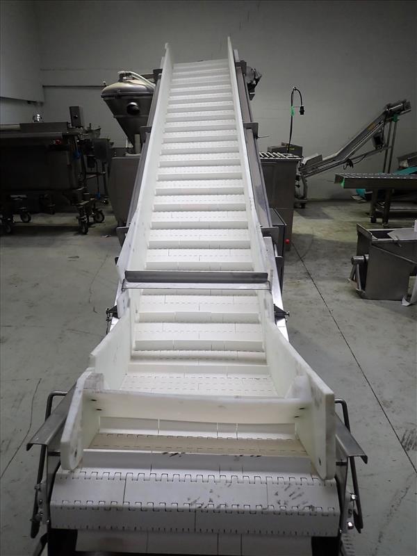 SolutionsInox incline conveyor, s/s, 18 in. x 15 ft., fluted-belt w/ wash-down motor, VSD, touch-screen controls w/ casters