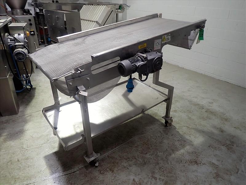 Heat&Control wire-mesh conveyor, s/s, 28 in. x 6 ft., pwr w/ casters