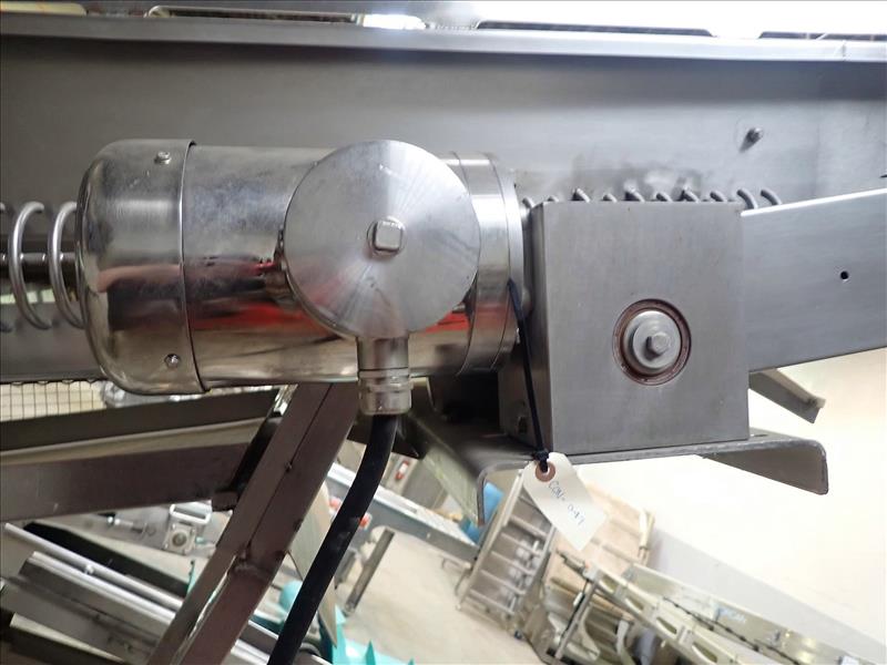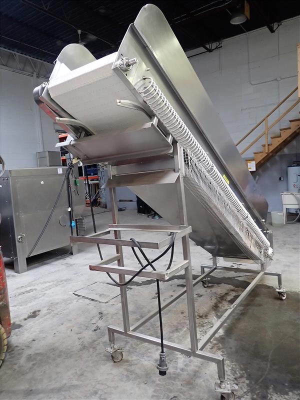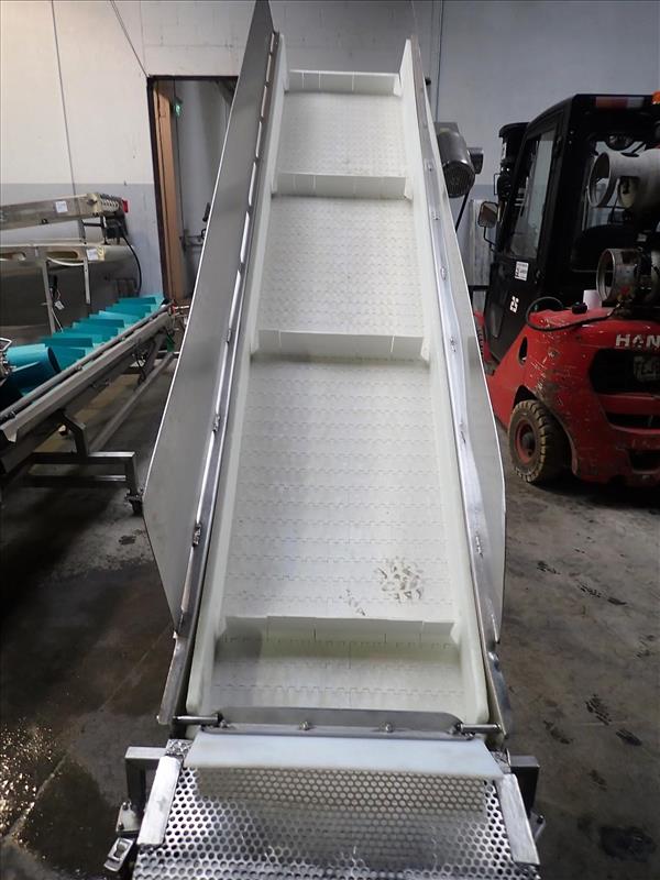 SolutionsInox inclined conveyor, s/s, 20 in. x 128 in. fluted belt, wash-down motor w/ casters