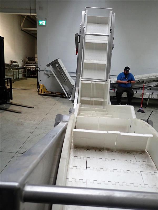 SolutionInox elevator conveyor, s/s, 14 in. x 15 ft. x 9 ft. high fluted belt