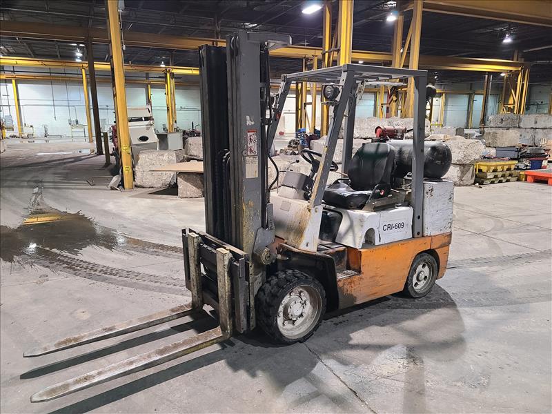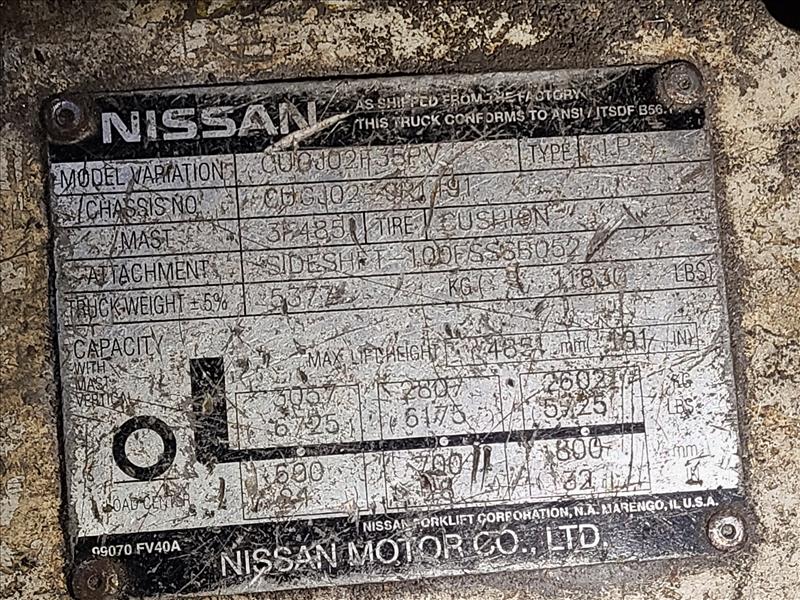 Nissan Forklift (#CRI-609), 3-stage, lever-cont., 10,134 hours, 6,725lbs capacity, LNG power