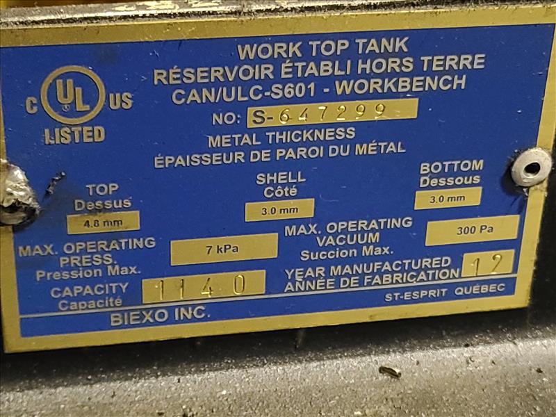 Alemite Work Top Bench Tank, S/N.S-647299, 1140 lbs capacity